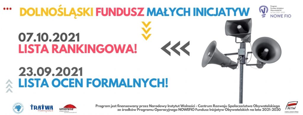 Dolnośląski Fundusz Małych Inicjatyw jest finansowany przez Narodowy Instytut Wolności – Centrum Rozwoju Społeczeństwa Obywatelskiego ze środków Programu NOWEFIO – Fundusz Inicjatyw Obywatelskich na lata 2021-2030