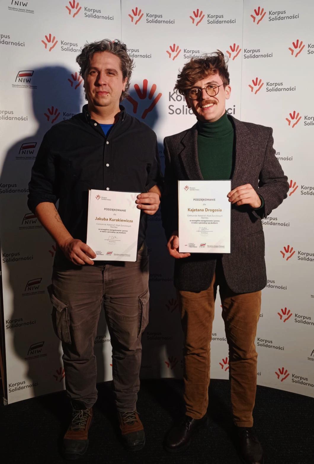 Zdjęcie pracowników tratwy trzymający dyplomy